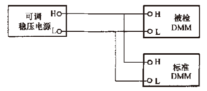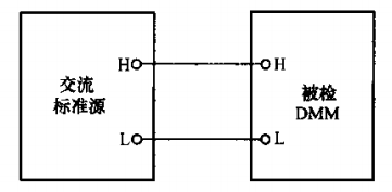 交流標準源法檢定數(shù)字多用表交流電壓功能的接線如圖3所示。
