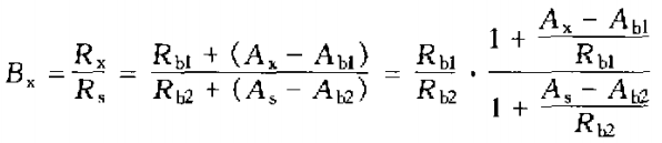 用作為標(biāo)準(zhǔn)的電阻比測(cè)量?jī)x器或裝置直接測(cè)量Rx與Rs的電阻比值Bx。測(cè)量結(jié)果為