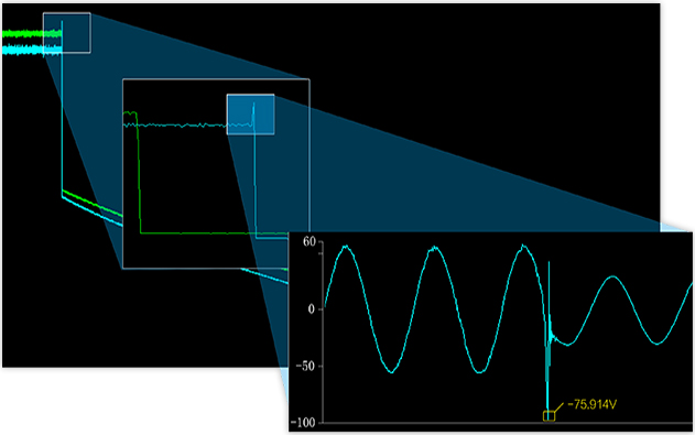 上位機(jī)提供數(shù)據(jù)回放與計(jì)算精準(zhǔn)定位放大功能、游標(biāo)計(jì)算功能、FIR數(shù)字濾波等功能,便于用戶進(jìn)行數(shù)據(jù)的精準(zhǔn)定位與分析,原始數(shù)據(jù),纖毫畢現(xiàn)。