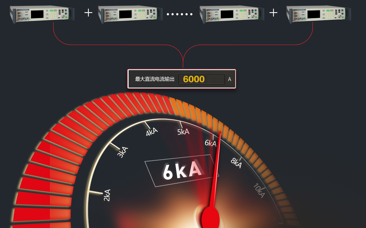 6710C直流標準電流源支持多臺電流源并聯(lián)輸出,最大直流電流輸出可達6000A。